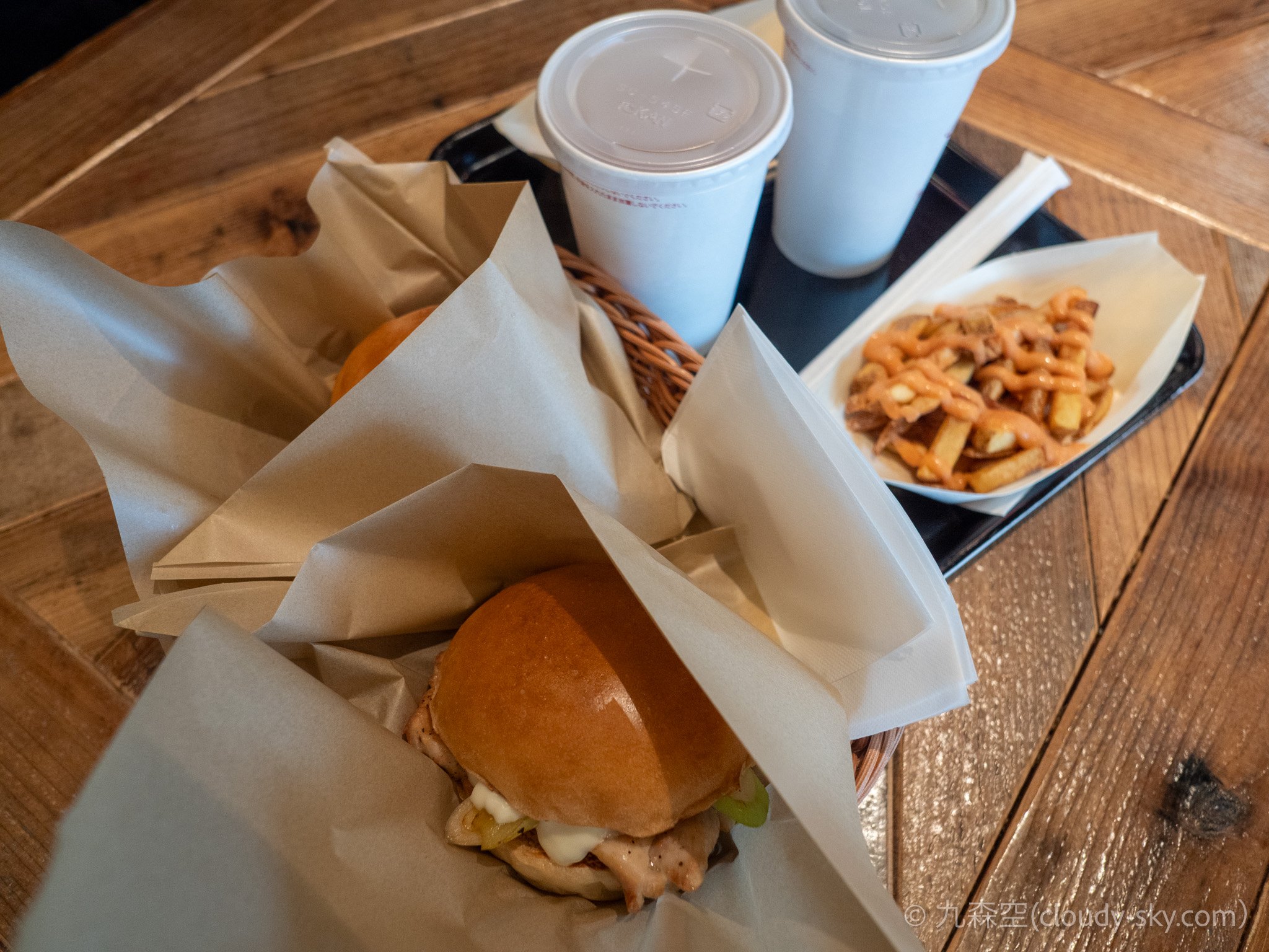 私が注文したのは、「焼鳥バーガー 旨味スパイス」。嫁が注文したのは「焼鳥バーガー 秘伝のたれ。」。どちらもバンズと具(焼鳥)の味のバランスが悪いと言うか何て言うか。
